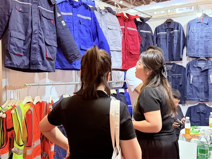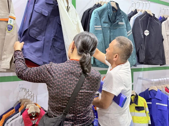 近 200 家参展商带来丰富多样的展品,涵盖职业装上中下游全产业链,品类齐全且各具特色。现场展示的职业时装兼具时尚与实用性,满足不同商务场景需求;职业制服各具行业特色,尽显专业形象;职业工装结实耐用且贴合工种需求;职业防护服聚焦场景,为特殊行业从业者筑牢安全防线;职业装配饰与面辅料种类丰富,更是为职业装生产商提供了多元选择。参展商们热情地向观众介绍产品特性,从设计理念到面料选择,细致讲解每一处细节,充分展现了职业装行业的创新实力与精湛工艺。