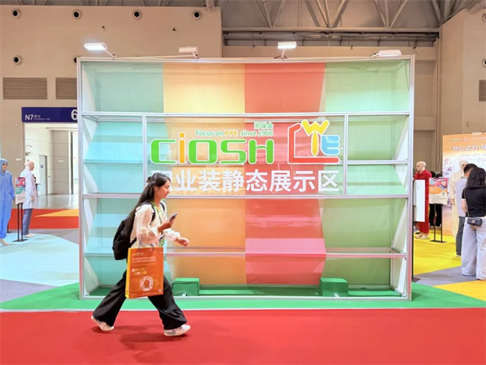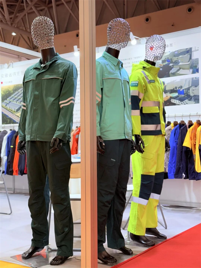 本次展会现场活动丰富多彩,亮点十足。极具地域特色的“职山城,见未来” 职业装静态展示区,成为观众打卡的热门地点。展示区征集了各大参展商及企业的各类工装,并精心划分为四个主题区域。「云端之上・科创之光」区域,医生、生物实验室研究员、汽车工程师、职场白领的工装整齐陈列,尽显专业与科技感;「地心之力・硬核守护」区域,致敬地铁检修员、化工厂工作人员、汽车制造师、风能发电行业及制药车间工作人员,他们的工装承载着守护的使命;「热辣江湖・百味人生」区域,食品质检员、交警、电工的工装,展现出不同职业的别样风采;「跨越天堑・城市脉搏」区域,建筑工人、船员、快递小哥、环卫工人的工装,见证着城市的运转与发展。每个区域的人台模特旁,都清晰标注着工装的详细信息,观众不仅能近距离观赏,还可亲手触摸面料,感受不同面料的质感、柔软度与厚度,深入了解职业装的品质。