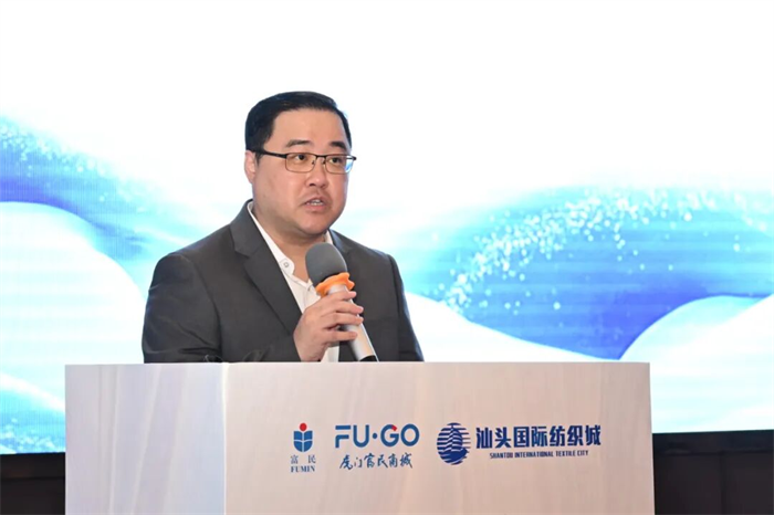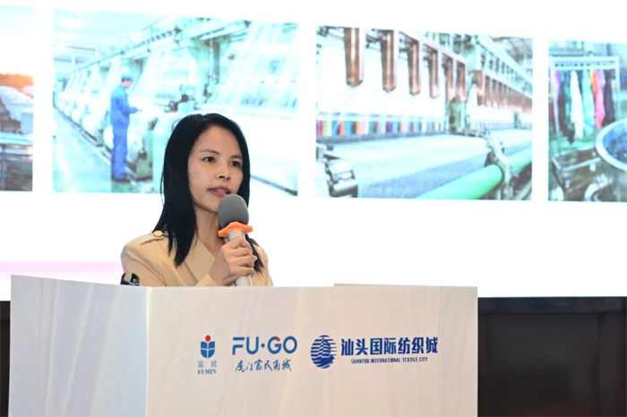 汕头市纺织服装产业副秘书长、汕头国际纺织城运营中心常务副总李瑞萍现场推荐汕头纺织产业的全链条实力与汕头国际纺织城的平台承载力,并表达了借虎门“三会”东风深化与虎门服装产业联动、实现共赢发展的强烈意愿。