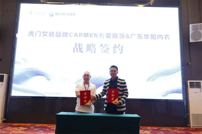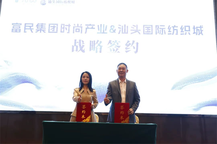 汕头国际纺织城与虎门富民集团签订时尚产业战略合作协议。汕头国际纺织城园区部头企业代表锦龙面料、广烁针织、华阳内衣与虎门富民集团FUGO商城旗下虎门女装品牌CARMEN卡蔓服饰、巴迪小虎童装品牌、东莞市奔踏品尚服饰有限公司优质商家代表,共同落笔签约,标志着汕头与虎门服装产业协同发展从意向走向实操,迈入实质性合作阶段。