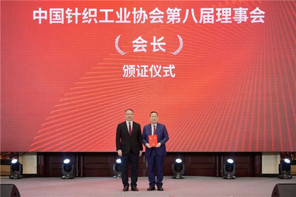 大会为新当选的会长、监事长、特邀副会长、副会长以及中国针织工业协会袜子专业委员会、中国针织工业协会数智化分会负责人等颁发了证书。