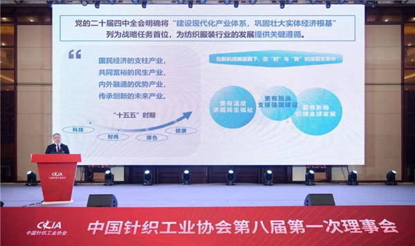 “即将进入的‘十五五’时期,是基本实现社会主义现代化‘夯实基础、全面发力’的关键五年,也是纺织行业引领全球发展的战略窗口期。”中国纺织工业联合会党委书记、会长孙瑞哲在总结讲话时指出,“在新的战略蓝图下,在‘时’与‘势’的深刻变革中,针织行业要更有温度,承载民生福祉;要更有担当,支撑强国建设;要更有影响,引领全球发展。”并对新一届理事会提出了期望,“一要铸忠诚,在政治引领上‘站得更高’;二要勇担当,在创新引领上‘走得更前’;三要善作为,融通发展上‘做得更实’。”